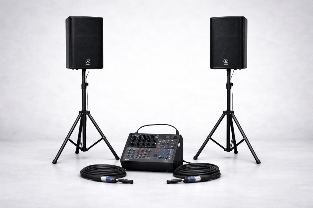 Een krachtige Bluetooth speaker of compacte PA-set is vaak voldoende.