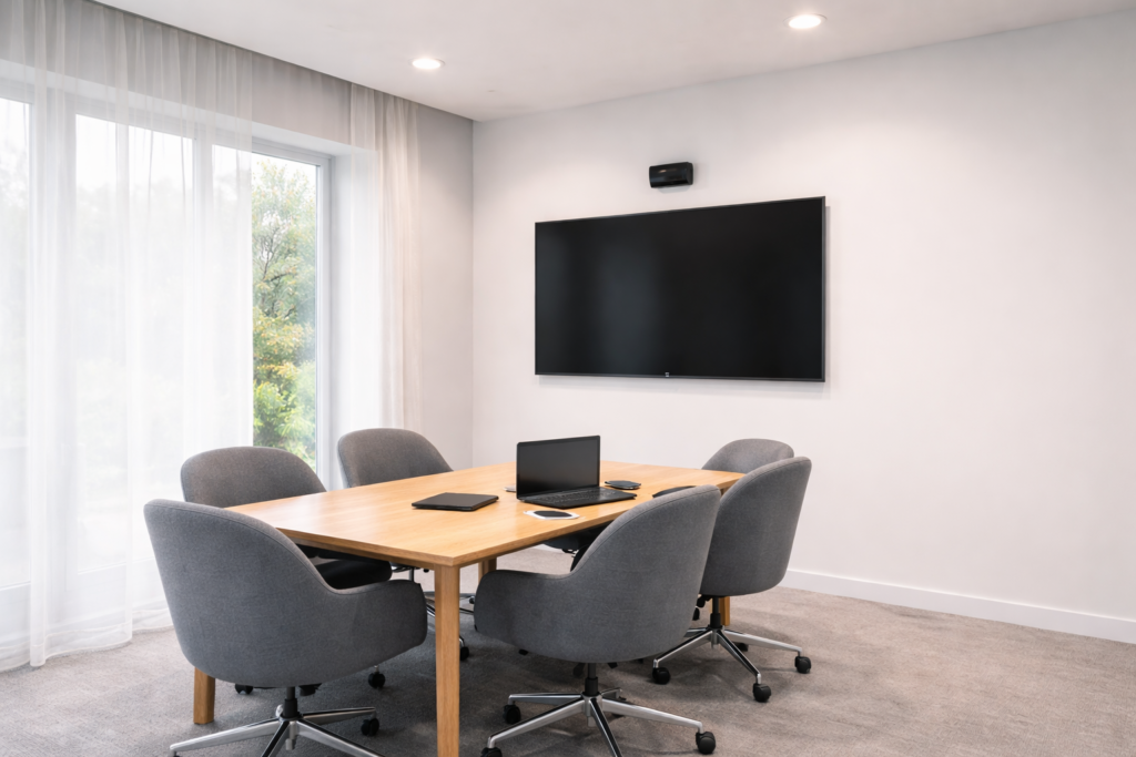 Voor kleine vergaderruimtes tot ongeveer 40 m² voegt een grote installatie meestal weinig toe. Het systeem wordt sneller duurder en ingewikkelder zonder dat het geluid echt beter wordt. In de meeste gevallen is een compacte en duidelijke audio-oplossing ruim voldoende voor presentaties, meetings en videovergaderingen.